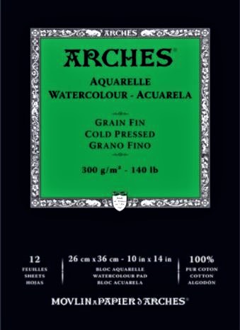 Arches er kjent for å være det ypperste av papir for akvarell. Det er laget i de samme gamle franske fabrikkene siden 1492, og det brukes ingen kunstige blekemidler. Hvert ark, som er laget i 100 % bomull, blir nøye kontrollert for å tåle hard behandling, mye maling, maskeringsvæsker og tape uten at overflaten tar skade av det.
