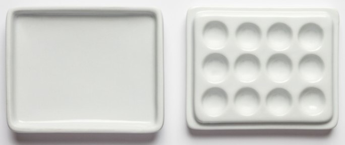 Keramisk palett med keramisk lokk. lite, med 12 rom