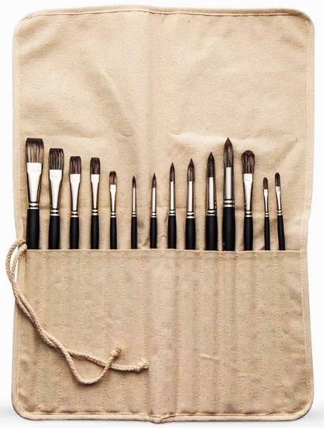 Oppbevar penslene dine skånsomt i denne linholderen.