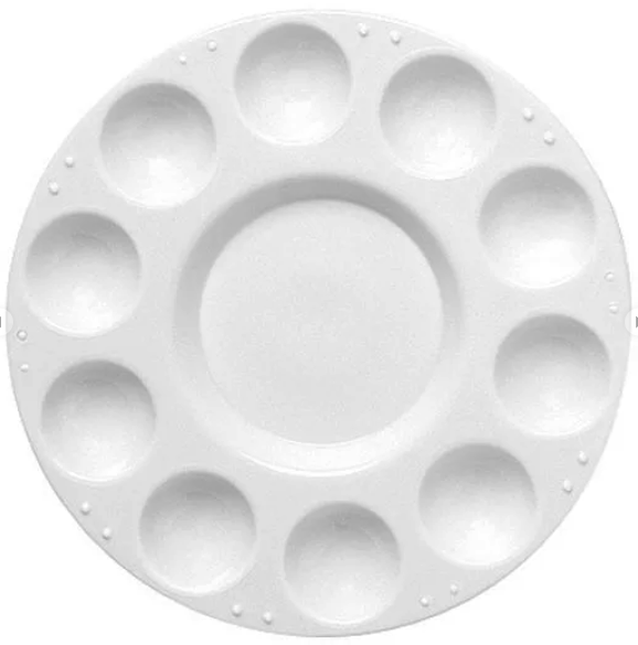 Enkel rund palett med 10 rom i tillegg til et stort i midten.