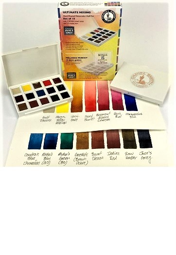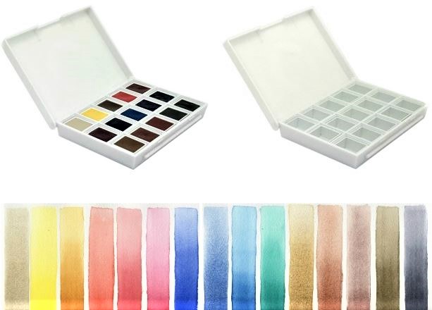 Settet inkluderer disse DANIEL SMITH akvareller i half pans: ( * indikerer en farge som er unik for DANIEL SMITH.)